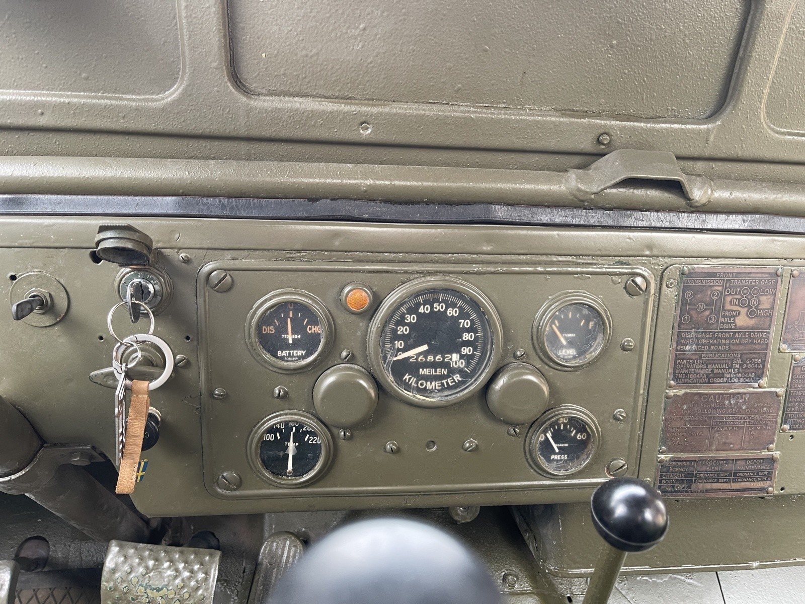 Klappbare Frontscheibe, Ersatzrad an der Rückseite, Anhängerkupplung vorhanden