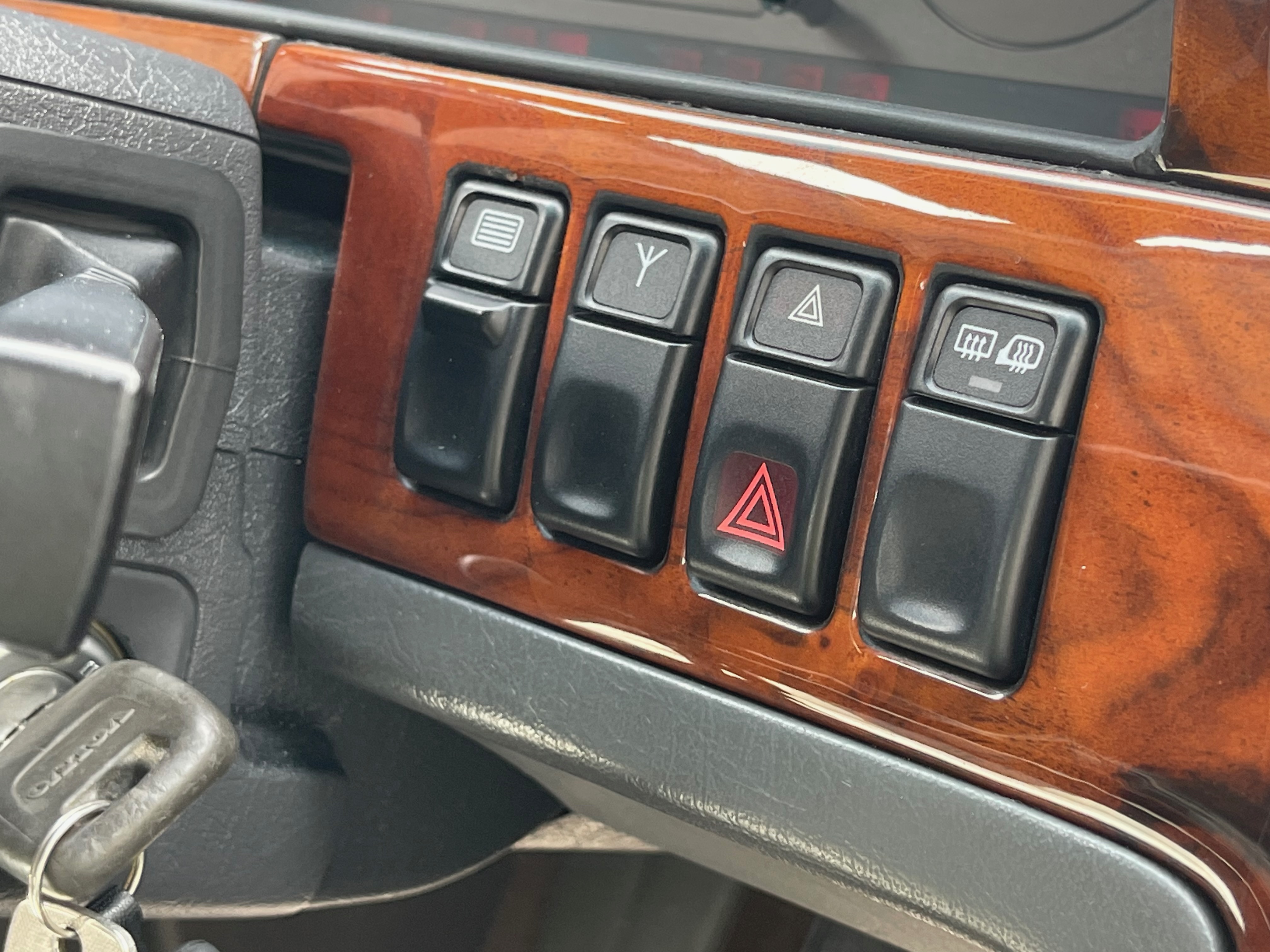 Die Mehrheit dieser Executive Level III Ausführung wurde exportiert. Neben geringeren Ausstattungsvarianten verfügt dieses Modell über eine hintere Mittelkonsole, elektrische Sitze, Schminkspiegel in der Decke, einen Champagnerkühlschrank, einen Fax/Drucker in der Mittelkonsole und einen Ericsson T32 in der Mittelkonsole. Laut Volvo Heritage wurden 97 Fahrzeuge dieser Ausstattungsvariante gebaut. An den vorderen Kotflügeln sind Nilsson/Volvo-Flaggenhalterungen erhältlich. Werfen Sie einen Blick auf die Fotos.